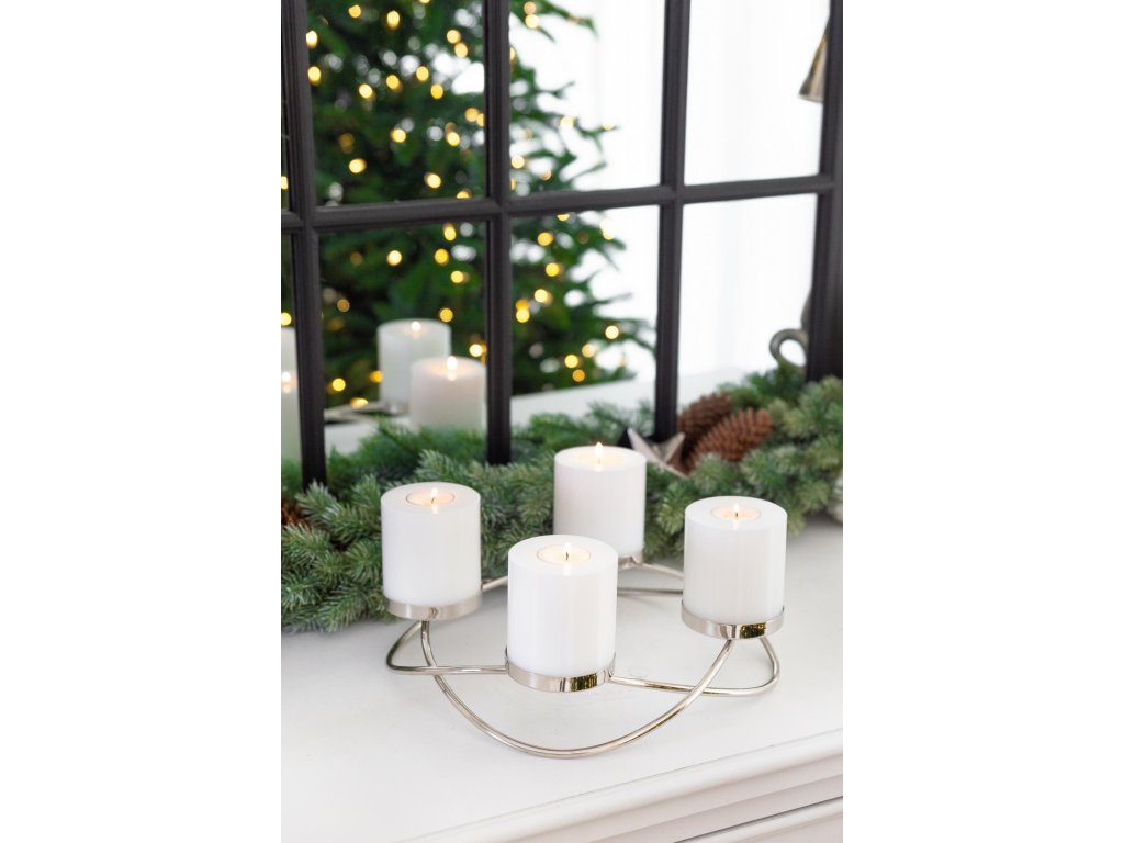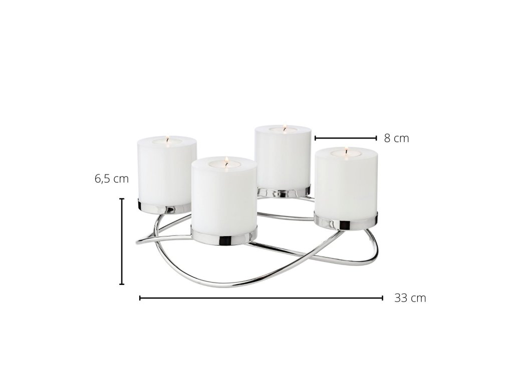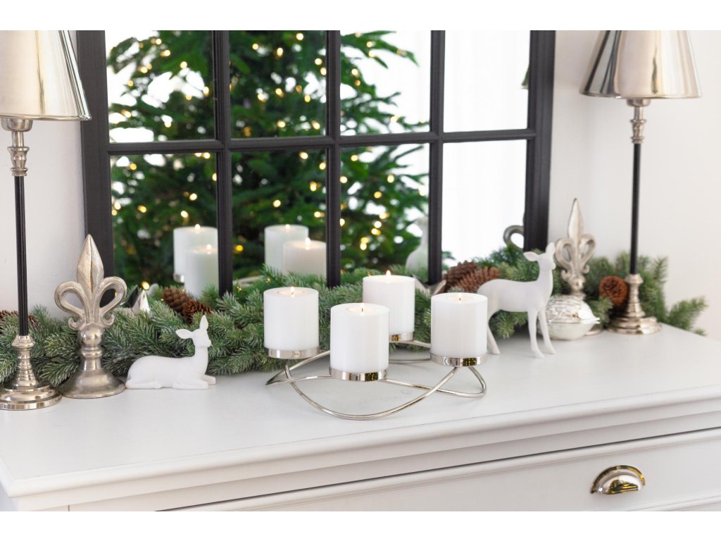 Az adventi koszorúk a karácsonyi ünnepek szerves részét képezik. Az Edzard Alva luxus adventi koszorúja karácsonyi hangulatot varázsol otthonába, és minden adventi dekoráció esszenciájává válik. Az Alva elkápráztatja Önt modern és minimalista dizájnjával. Az eleganciát a fehér gyertyák adják, az ezüst szín pedig gyönyörű és egyedi megjelenést kölcsönöz. Tedd a koszorút egy fa tálcára, majd ötleted szerint kreatívan díszítheted zöld gallyakkal, karácsonyi díszekkel vagy bármilyen más módon. A karácsonyi dekoráció minden, csak nem unalmas lesz az Alva koszorúval! Rozsdamentes acélból készült. A gyertyatartók átmérője 8 cm. Az ajánlatban más típusú luxus adventi koszorúkat is találsz az Edzardtól. Tedd hangulatossá otthonod! Csak válassz!