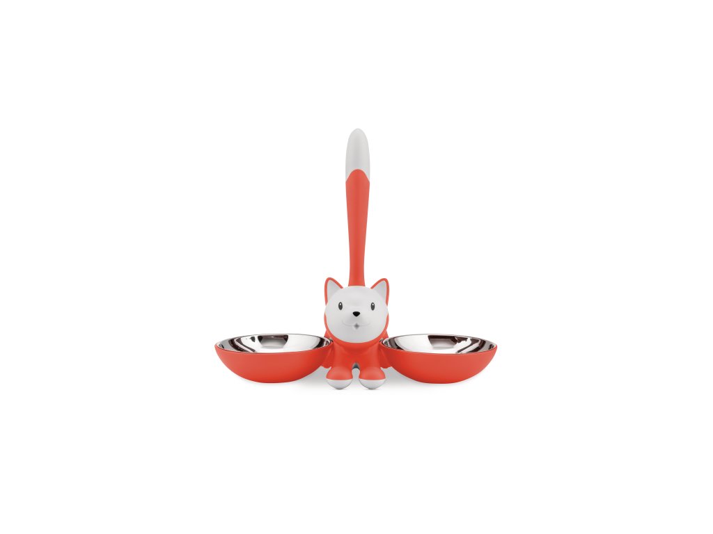 A prémium kiegészítők olasz márkája, az Alessi az Ön négylábú kedvenceire is gondol. Miriam Mirri, aki számos ikonikus dizájnt készített Alessi számára, szintén a Tigrito macskatál mögött áll. A tál egyszerre játékos és stílusos. Szórakoztató elemként a középső részben a vörös macska karakter, melynek mindkét oldalán két kisebb tálka található kedvencének. A macskaszerű farok felemelkedik, hogy fogásként szolgáljon neked. Ennek köszönhetően könnyedén kezelheti az egész összeállítást, és megkímélheti magát az edények ügyetlen emelésétől. A rozsdamentes acél belső edények könnyen eltávolíthatók és moshatók, vagy külön újratölthetők. A tál térfogata 0,55 liter, 28 cm magas, 32 cm hosszú és 16 cm széles. Szerelje fel belső terét egy olyan darabbal, amely szórakoztatja Önt és kedvencét.
