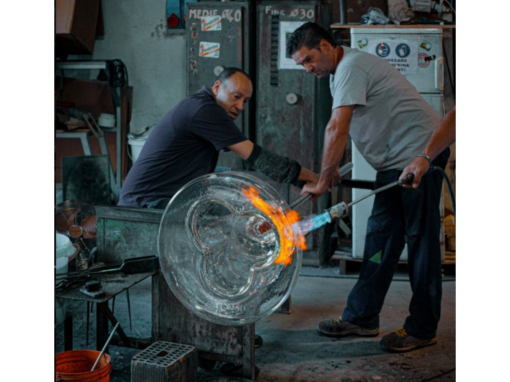 A Soda fejjel lefelé, bőséges levegővétellel született. 20 kiló súlyú, és három üvegműves mester fújja, húzza és formázza. Az eredmény egyetlen üvegdarab, amelynek szárát három nagy szirom alkotja. A Sodában az üveg rezeg: kemény, kalapált felülete megtöri átlátszóságát, és egyfajta primitív esztétikát kölcsönöz neki. Ez az igazi művészi érték, amelyet egy ipari termékbe leheltek, amely számos formatervezési díjat nyert a Soda számára.