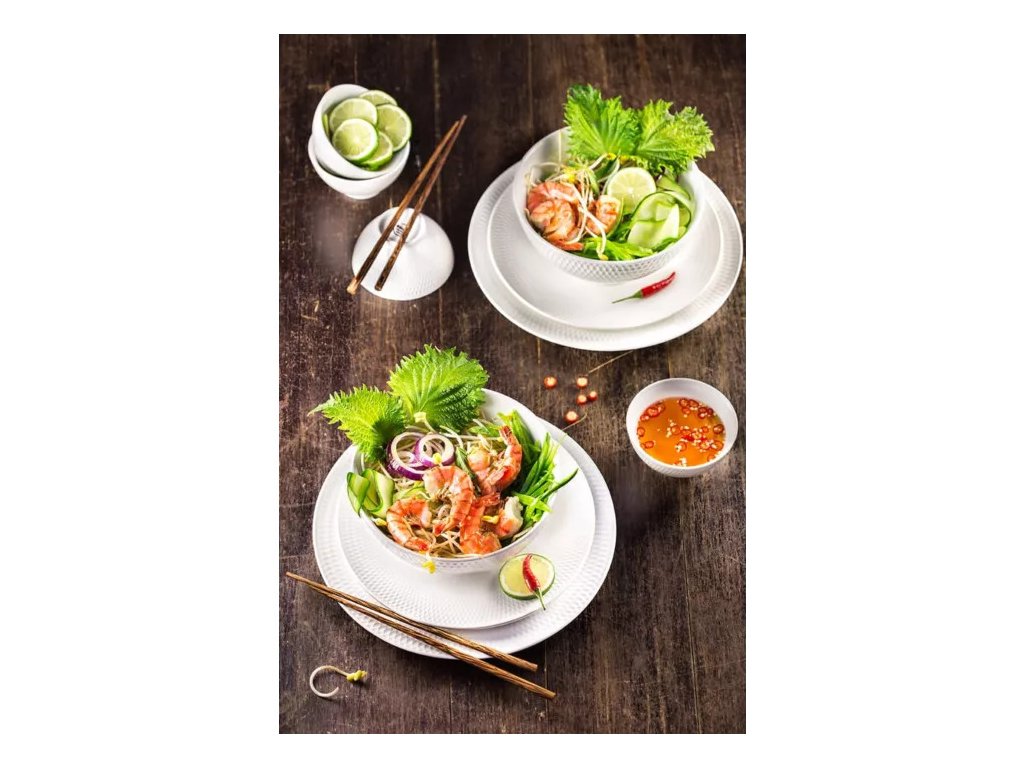 A White Basic Diamonds kollekciót a mindennapi étkezéseknél, de ünnepi alkalmakkor is kihasználja majd. Az edények peremén a szabályos geometriai szerkezet gyengéd relieft képez. A kollekció elegáns, utánozhatatlan és időtlen. A White Basic típusú porcelán egy kicsit erősebb és lényegesen szilárdabb, mint a csontszínű Bone China porcelán, amely nagyon finom, vékony, szinte átlátszó.