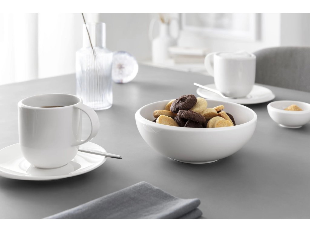 A Villeroy & Boch NewMoon kollekciója a modern dizájn szerelmeseit fogja elvarázsolni jellegzetes, aszimmetrikus formájával, amelyet az újhold finom vonala ihletett. A tiszta fehér porcelán kiemeli az egyszerű, mégis kifinomult íveket, friss és időtlen megjelenést kölcsönözve asztalának.