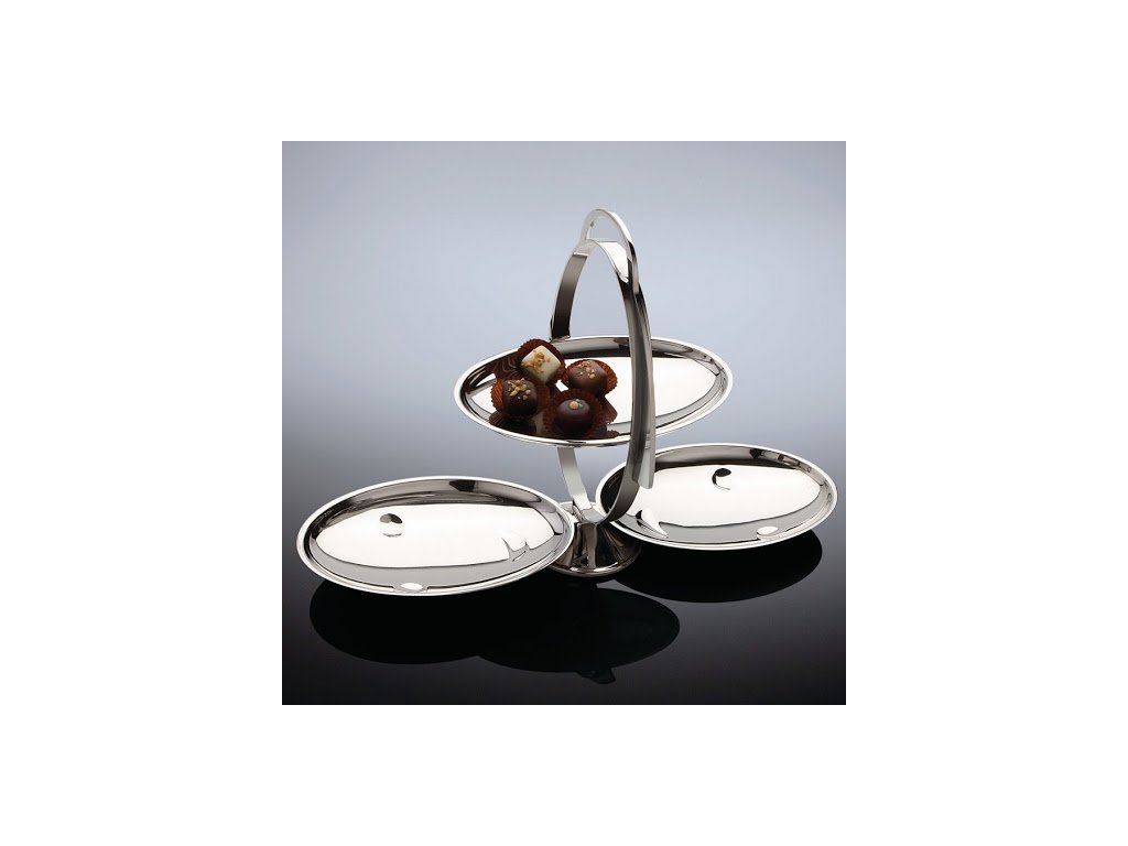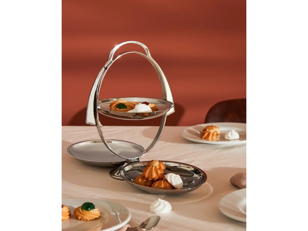 Alessandro Mendini számos ikonikus darabot tervezett az olasz prémium kiegészítőmárka, az Alessandro Mendini számára, köztük ezt a desszertes tálalókészletet is. Mendini világszínvonalú tervező volt, aki olyan márkákkal is együttműködött, mint a Philips és a Swarovski. Az Anna kollekcióban végig megtalálható az a tipikus mosolygó arc, amelyet ezen a készleten látunk, amikor a tálca összes részét összeillesztjük. Az évek során ez a mosoly az igazi háziasszony alakjára való utalás megtestesítőjévé vált, és a legkülönfélébb anyagokból készült termékekben is tükröződik. Az Anna Gong egyszerre klasszikus háromszintes állvány és műalkotás. Ne féljen eredeti lenni, és tálaljon stílusosan édes vagy sós falatkákat. A tálca rozsdamentes acélból készült, tükörsima felülettel, ami eleganciát kölcsönöz neki, és érdekes hatást kelt a fény és a színek visszaverésekor. Méretei: 27 cm magas, 20 cm széles és 44 cm hosszú. Teremtsen egyedi hangulatot az Alessi tálcával, amely nem fél a kivételességtől.