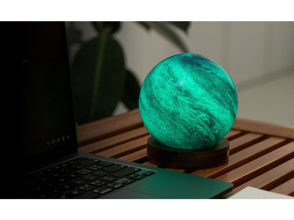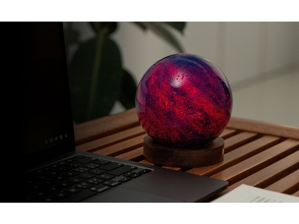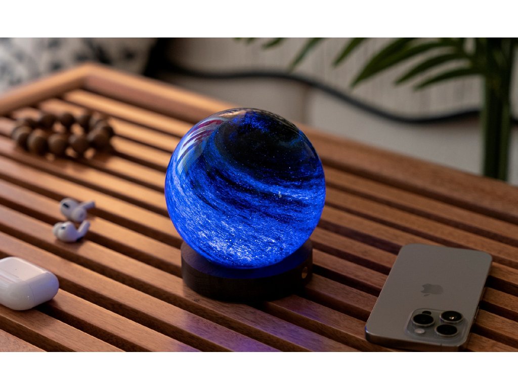 Két méretben – Mini és Large – és négy egyedi felületkezeléssel (Galaxy Breeze, Sandstorm, Polar Cloud és Stellar Ocean) kapható. Mindegyik darab eredeti, fúvott üvegből kézzel készült, és környezetbarát, FSC-tanúsítvánnyal rendelkező amerikai diófa talppal rendelkezik.