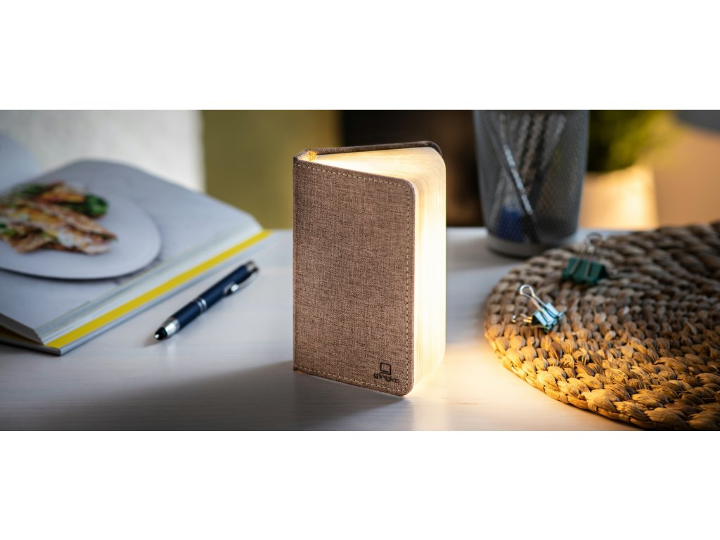 Összecsukható lámpa "Smart Book" mini, barna textil - Gingko