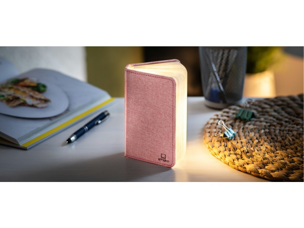 Összecsukható lámpa "Smart Book" mini, rózsaszín textil - Gingko