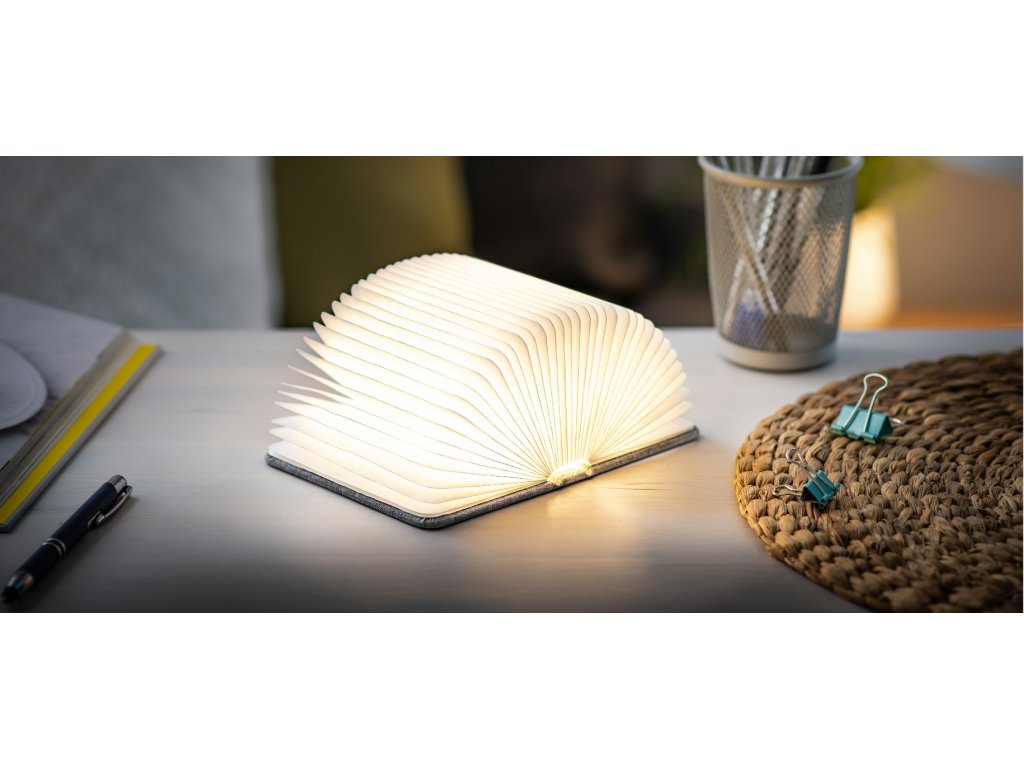 Összecsukható lámpa "Smart Book" mini, szürke textil - Gingko