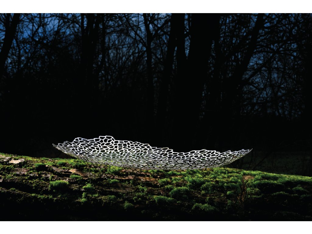 Guido Venturini, který zasvětil život designu a architektuře, navrhl tuto designovou nádobu Opus pro italskou značku Alessi. Mísa Opus je tvořená členitými, krajkovitými vzorky, které vytváří neuvěřitelně působivý efekt. Při průchodu světla se na stole pod nádobou objevuje malebný obraz, který odráží jedinečný vzorek z nádoby samotné. Ať do mísy vložíte ovoce, pečivo nebo ji necháte prázdnou, tak bude fungovat jako stylové umělecké dílo. Nádoba Opus je vyrobena z nerezové oceli a její rozměry jsou: výška 7,5 cm, délka 60 cm a šířka 34 cm. Díky svému materiálu a elegantnímu avšak minimalistickému designu, tato nádoba zazáří v každém interiéru.