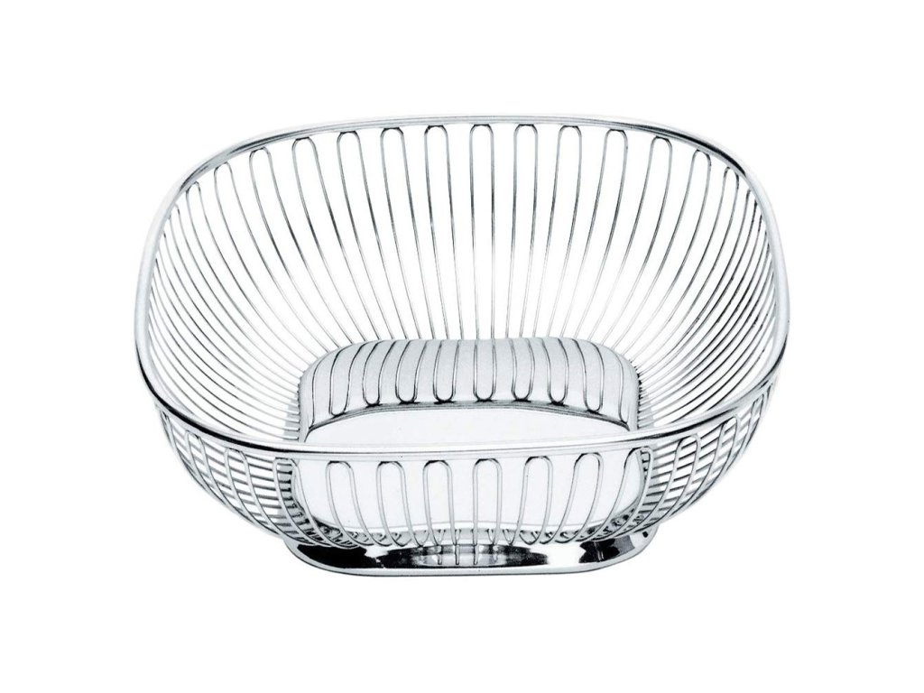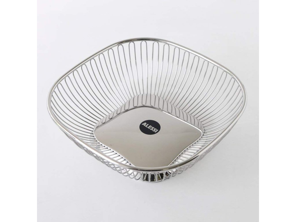 Az Alessi családi céget 1921-ben alapította az olaszországi piemonti Giovanni Alessi, és nagyon különleges dizájner darabokat gyárt, és híres tervezők tesztelő laboratóriumának számít. Hagyományaiban szilárdan gyökerezik, és a funkcionalitást a művészettel kívánja ötvözni. A finom kidolgozású drótkosarak sorozata a kézműves fémmegmunkálás és az ipari tömeggyártás közötti gyártás átmeneti szakaszából származik, és azóta is a népszerűség csúcsán van. Lapos, négyzet alakú formájának köszönhetően a kosár tálként használható péksütemények, gyümölcsök és zöldségek tárolására. A drótfal elegáns és stílusos megjelenésű, ugyanakkor teret biztosít a levegőnek a kosár tartalma és a környezet között. A rozsdamentes acélból készült kosár szokatlan négyzet alakú (méretei 23 cm × 23 cm), amely remekül mutat egy négyzet alakú vagy kerek asztalon és a pulton, ahol kevesebb helyet foglal, mint egy kerek belső közvetlenül arra biztat, hogy töltse meg gyümölccsel és jó süteményekkel.