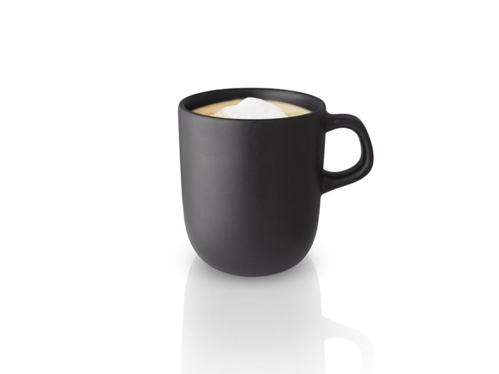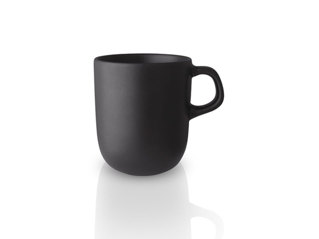 Kőagyag bögre skandináv stílusú konyhában. Egyszerű dizájn és meleg fekete ernyő, masszív konstrukció, amely alkalmassá teszi a bögrét mindennapi használatra. Jól kiegészíti az Eva Solo Nordic konyhai sorozatának többi termékét.
