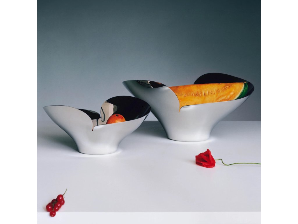 A dán tervező, Helle Damkjær népszerű Bloom kollekciójának részeként elegáns, organikus formában testesíti meg a virágzó virágok szépségét. A polírozott rozsdamentes acél tál önmagában is szoborként funkcionál, akár gyümölcsökhöz, akár önálló díszítőelemként használják.