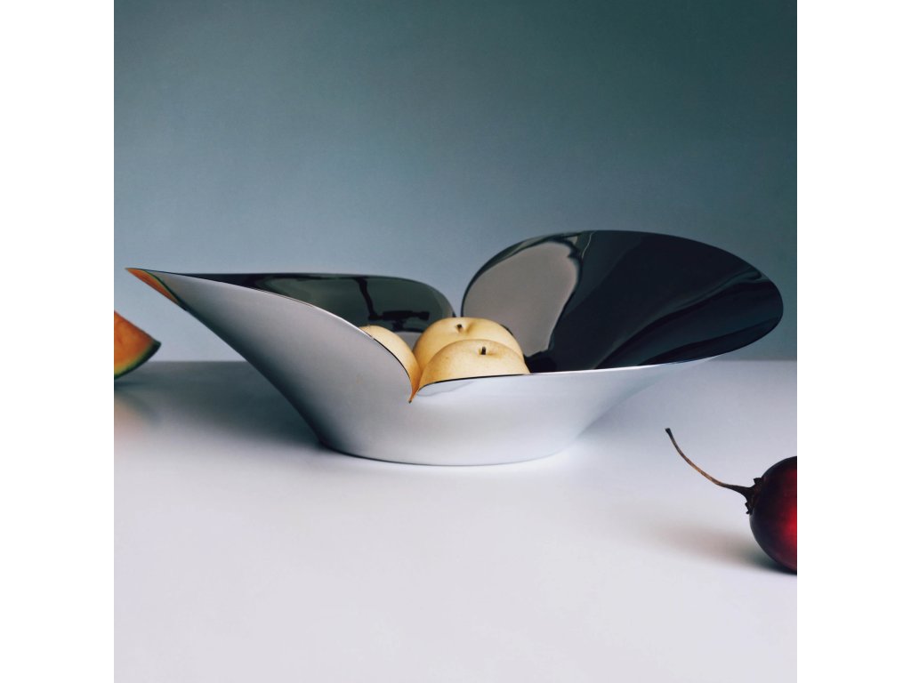A dán tervező, Helle Damkjær népszerű Bloom kollekciójának részeként elegáns, organikus formában testesíti meg a virágzó virágok szépségét. A polírozott rozsdamentes acél tál önmagában is szoborként funkcionál, akár gyümölcsökhöz, akár önálló dekorációs elemként használják.