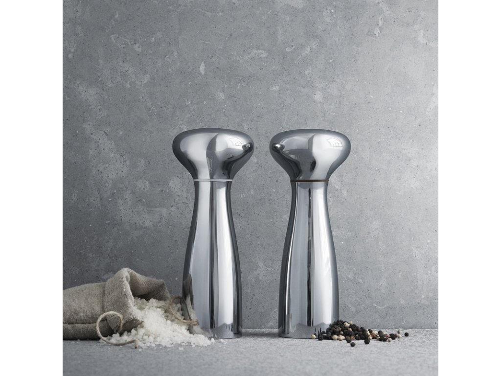Az Alfredo só és borsőrlő rozsdamentes acélból készült, és nagyszerű kiegészítője lesz az étkezőasztalának. A belső daráló rész a legmodernebb és legkiválóbb „AllGrind - Ceramic Technology” technológiával, kerámiából készült. Az őrlemény mérete könnyen beállítható a csavar forgatásával a daráló alján. Márka GEORG JENSEN