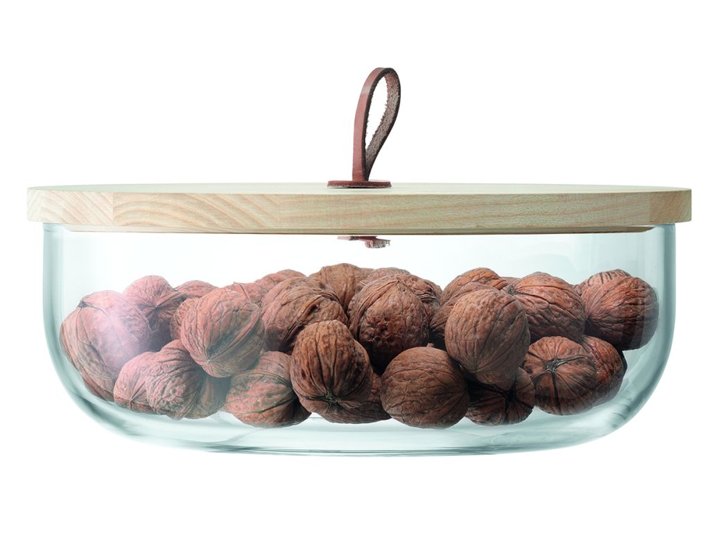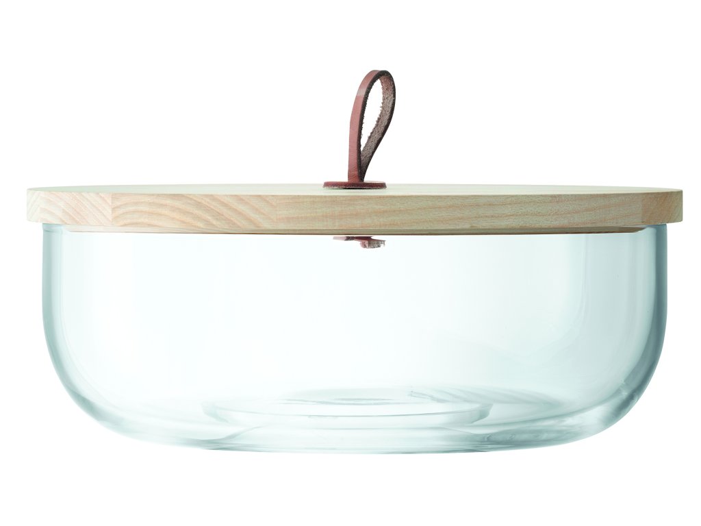 LSA IVALO tároló, fából készült fedéllel, 28 cm átmérőjű, áttetsző, kézzel készített