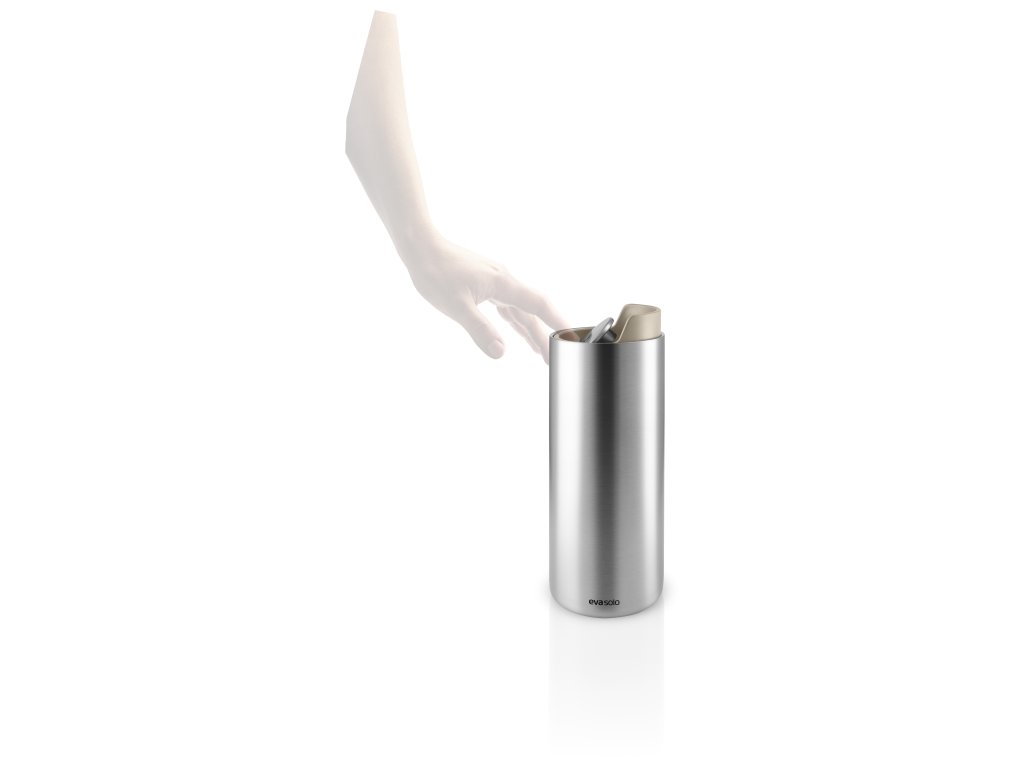 Az Eva Solo thermo utazóbögre ideális társ autós utazásokhoz vagy kirándulásokhoz. A fedél egy kézzel könnyen nyitható/zárható , és vezetés közben is kiválóan alkalmas ivásra. A bögrét megtöltheti kávéval vagy más itallal – a szuperszigetelő dupla vákuumfalak melegen vagy hidegen tartják az italokat. Teszteltük, hogy az ital akár 12 órán keresztül is meleg marad . A praktikus szilikon pántnak köszönhetően a bögre könnyen hordozható, így ideális társ a hosszabb utakhoz. Újonnan elérhető smaragdzöld és gyöngybézs színben.