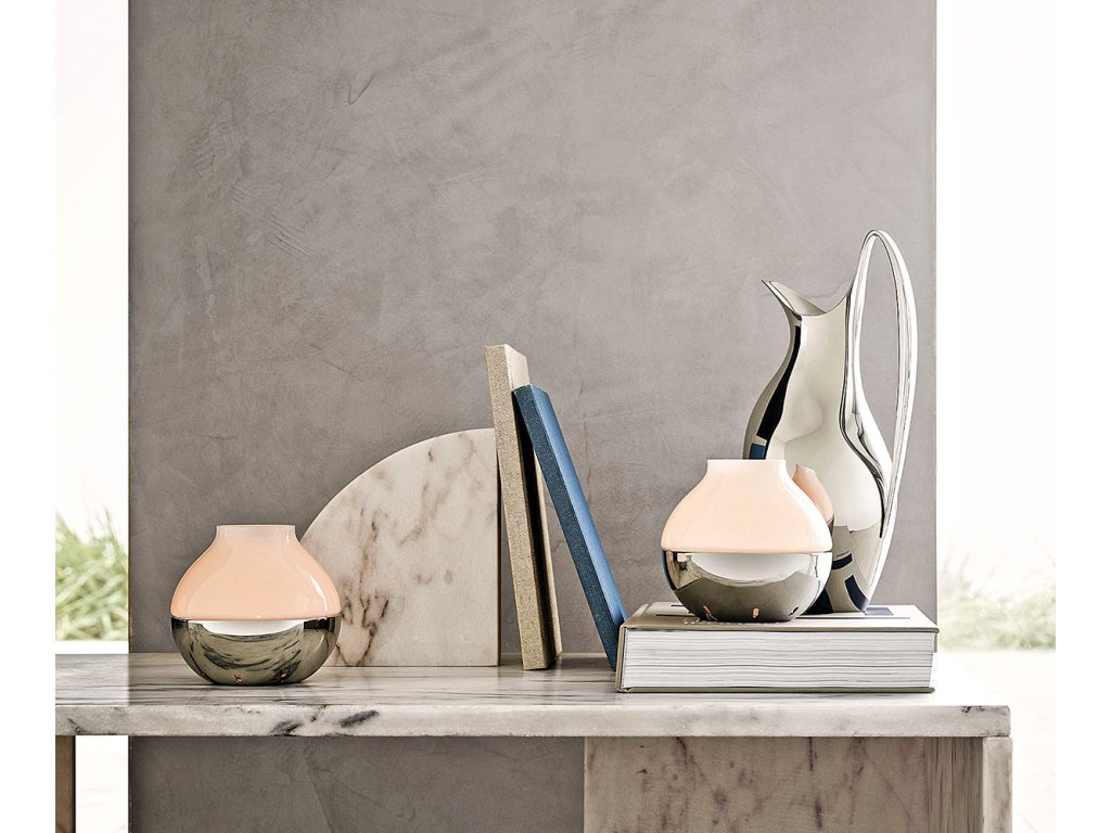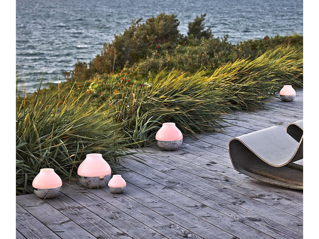 A 19 cm átmérőjű Henning Koppel gyertyatartó alja polírozott rozsdamentes acélból készült, hogy ne égesse meg magát a gyertyatartó mozgatásakor. A felső rész anyaga matt üveg, ami garantálja a kellemes fényt és hőleadást.