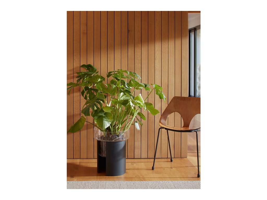 Két részből áll - egy kézzel fújt üvegtálból és egy porszórt acéloszlopból. A nyitott elülső rész elegendő fényt biztosít a gyökereknek, miközben könnyedséget és egyszerűséget ad az egész kialakításnak. Méretének köszönhetően tökéletesen kiemeli minden szobanövény szépségét. Garantáltan modern és szép eleme lesz a belső térnek.