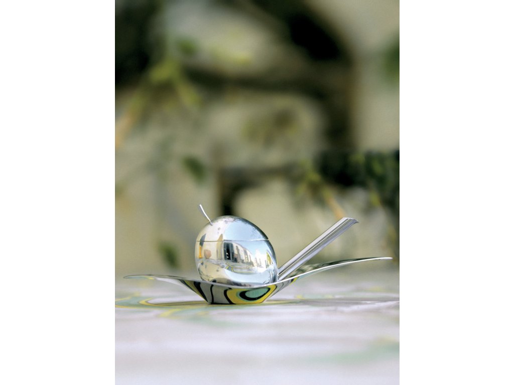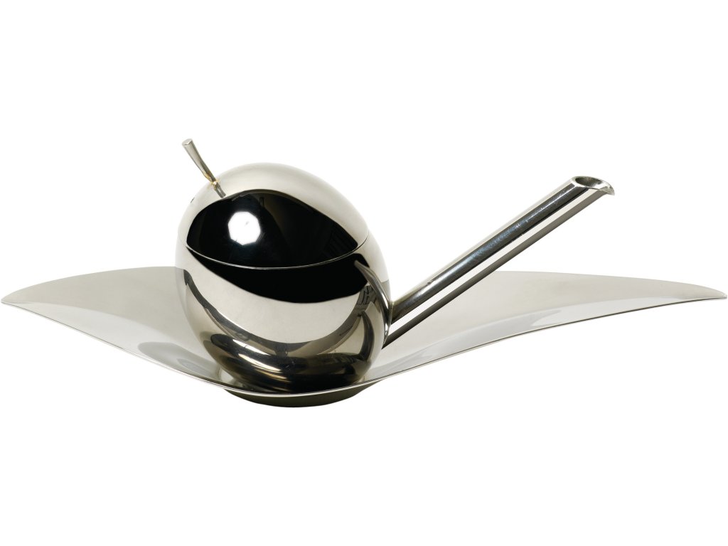 Az olasz Alessi márka dizájnos olajadagolóját Lorenzo Piccione di Pianogrillo tervezte. A szicíliai születésű tervező tervezői tanulmányokat folytatott, és hazatért, hogy minőségi olívaolajat készítsen. Mindezek a szempontok teszik egyedülállóan alkalmas jelöltté a tökéletes olajadagoló kialakításához. Az általuk az Alessivel megalkotott konténer stílusos kiegészítője minden konyhának, és egyben praktikus segítő is az étkezésnél. A Taste-huile adagoló tükörfényesre csiszolt rozsdamentes acélból készült, és egy levél alakú csészealjakon ülő olajbogyó profiljára formázták. Ez egy játékos és egyben elegáns dizájn, amelyet élvezni fog. Az adagoló formájának köszönhetően ételeinek olajos ízesítése egyszerű és biztonságos lesz. A tartály méretei: 6,3 cm x 17,5 cm x 7,5 cm. Tegye teljessé konyhai felszerelését ezzel a stílusos Alessi olajadagolóval.