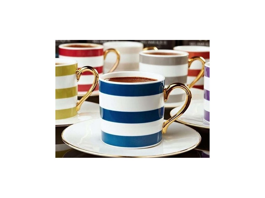 A kávéskészlet kiváló minőségű török porcelánból készült, amely finomságával és tartósságával tűnik ki, és 24 karátos arannyal van bevonva.