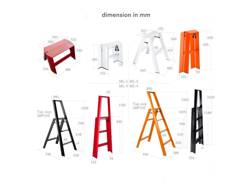 Létra, nagy, 4 lépcsős, fekete - Lucano