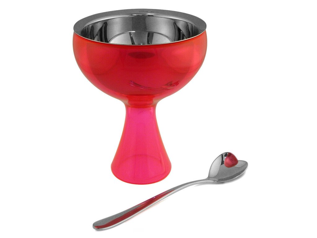 Ha Olaszországra gondolunk, sokunknak a világ legjobb fagylaltja jut eszünkbe. Az olasz prémium kiegészítők márka, az Alessi tisztában van ezzel, és Miriam Mirrivel együttműködve megalkotta a Big Love dizájner poharak és kanalak készletét, amelyet ehhez az édességhez szántak. Elfogyaszthatja a fagylaltot egyedül vagy párban. A kanalak szerelmes formájának köszönhetően megoszthatod partnereddel is, ami közvetlenül arra ösztönöz, hogy kettévágd a falatot. A kanalak elegáns szív alakúak, és tökéletesen kiegészítik a csészét, amely stílusos lábon áll. A kanál polírozott rozsdamentes acélból és a csésze is hőre lágyuló gyantából készült részletekkel. A csésze 15 cm magas és 12 cm átmérőjű. A csészét több színváltozatban is beszerezheti: kék, rózsaszín, fehér, narancs és sárga. Ne habozzon, szerezzen be különböző színváltozatokat otthonába, és tegye élénkebbé az egész belső teret.