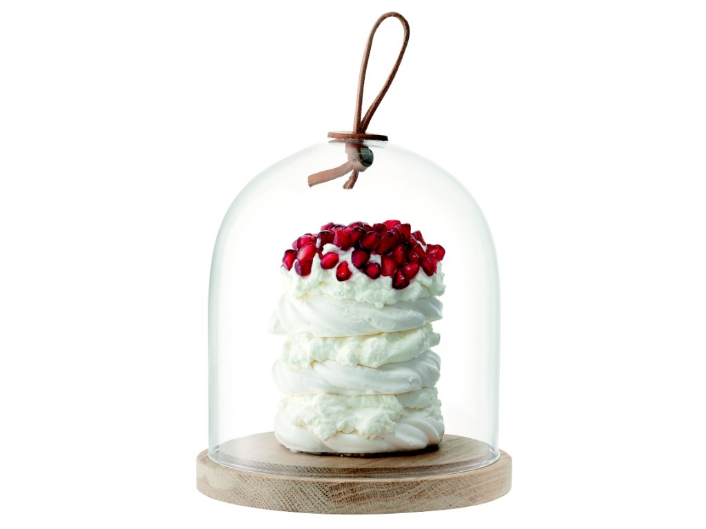 Hatásos, elegáns kiegészítő tálaláshoz - kézzel fúvott üvegkupola természetes, bevonat nélküli kőris deszkával, kézzel fonott, bőrfonalakból készült füllel. A deszkába vésett vájat biztosítja a fedél csúszásmentességét. Méretei: átmérője 13 cm, magassága 15 cm. Anyaga: tömör fa, üveg, bőr. Ajándékcsomagolásban szállítjuk.