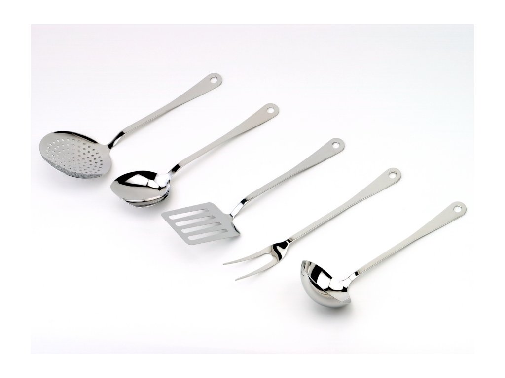 Ezt a készletet a brit tervező, Jasper Morrison tervezte az olasz prémium kiegészítő márkának, az Alessi-nek. Ő egy kiemelkedő tervező, aki olyan márkákkal működött együtt, mint a Rosenthal és a Sony. A tálaló evőeszközkészletet a funkcionalitás és az időtlen dizájn maximális figyelembevételével tervezte. Ennek köszönhetően minden alkatrész bármilyen enteriőrbe illeszkedik, és nem lesz csúnya a tekintet. A készlet tartalmaz egy merőkanalat, egy merőkanalat szűrővel, egy keverőt, egy villát és egy kanalat. Rozsdamentes acélból készültek, így kellemesen könnyűek a kézben és praktikusak a karbantartásuk. A készlet gyönyörű ajándék lehet barátaidnak, ifjú házasoknak vagy akár magadnak is! Örömmel töltheted el magad ezekkel a stílusos konyhai segítőkkel, amelyekkel bármilyen étel elkészítéséhez felkészülhetsz.