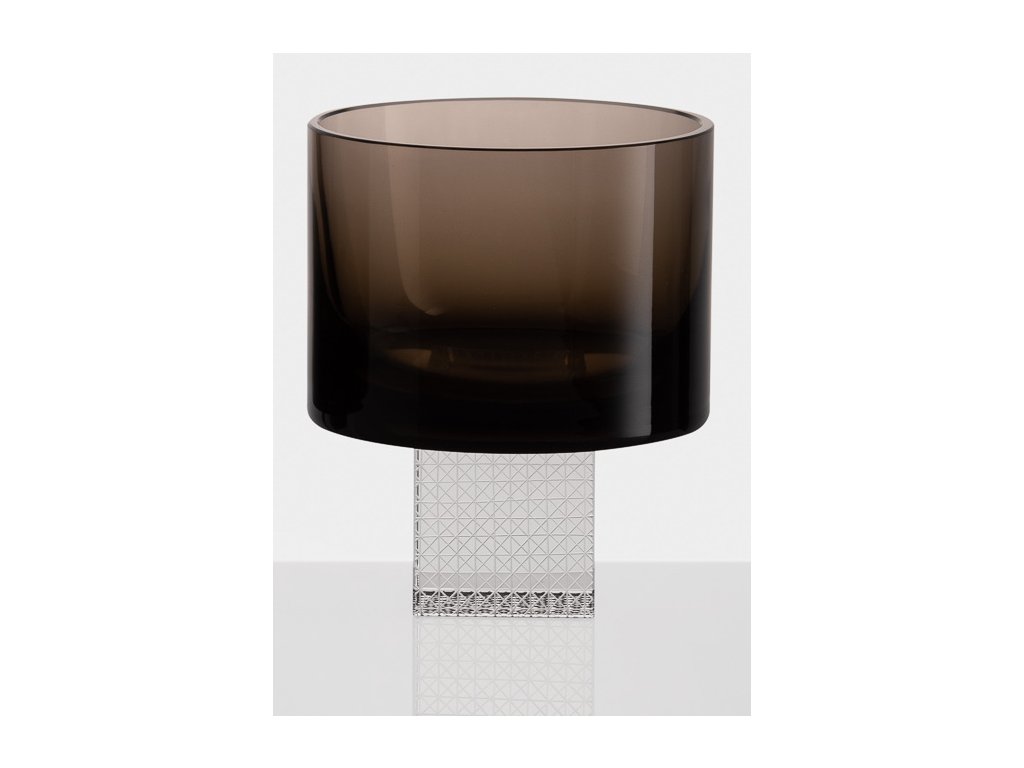 A poharak kézzel fújtak és csiszoltak. Egyedi csatlakozás láthatatlan UV ragasztóval, amely a kézzel gravírozott kockákat az üveghez köti.