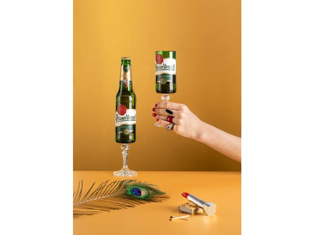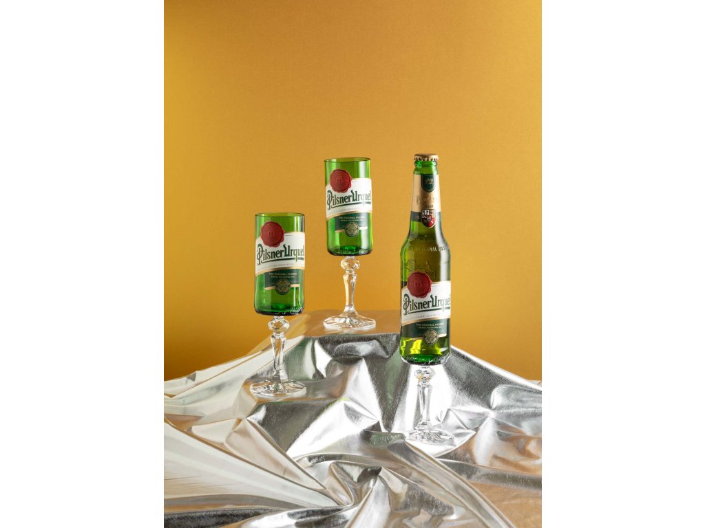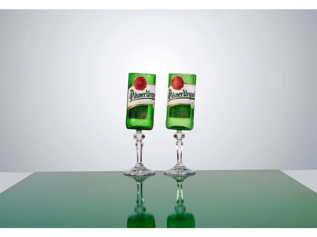 A Pilsner üveg és pohár nemes kristály száron prezentálva, részben provokációként született, részben új oldalról mutatja be és ünnepli a cseh sörkultúrát. A préselt üveg és a kézi kidolgozás ötvözete ez a darab. Hideg ragasztási technikával készült.