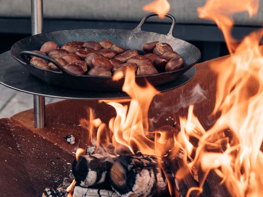 A tányér forgatható, így könnyen áthelyezheted a tűz fölé vagy attól el. Amikor távol van a tűztől, praktikus kisasztalként is használható - evőeszközöknek, szószoknak, süteményeknek és egyéb grillezési kellékeknek. Ezután ételt vagy italt melegíthetsz a tűz felett.