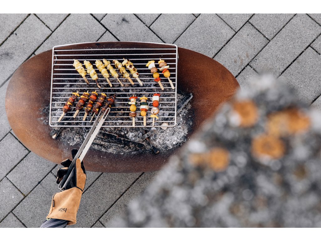 Lédús hússzeletek, ropogós csöves kukorica vagy különféle kolbászok grillezéséhez egyszerűen helyezze a grillsütőt a tűzrakóhely szélére. Nincs szükség bonyolult összeszerelésre. A grillezés intenzitása a parazsak grill alatti mozgatásával szabályozható. Magasabb hőmérséklet és gyorsabb grillezés érdekében egyszerűen pakolja őket közvetlenül a grillsütő alá, lassabb és kíméletesebb grillezéshez tegye félre őket.