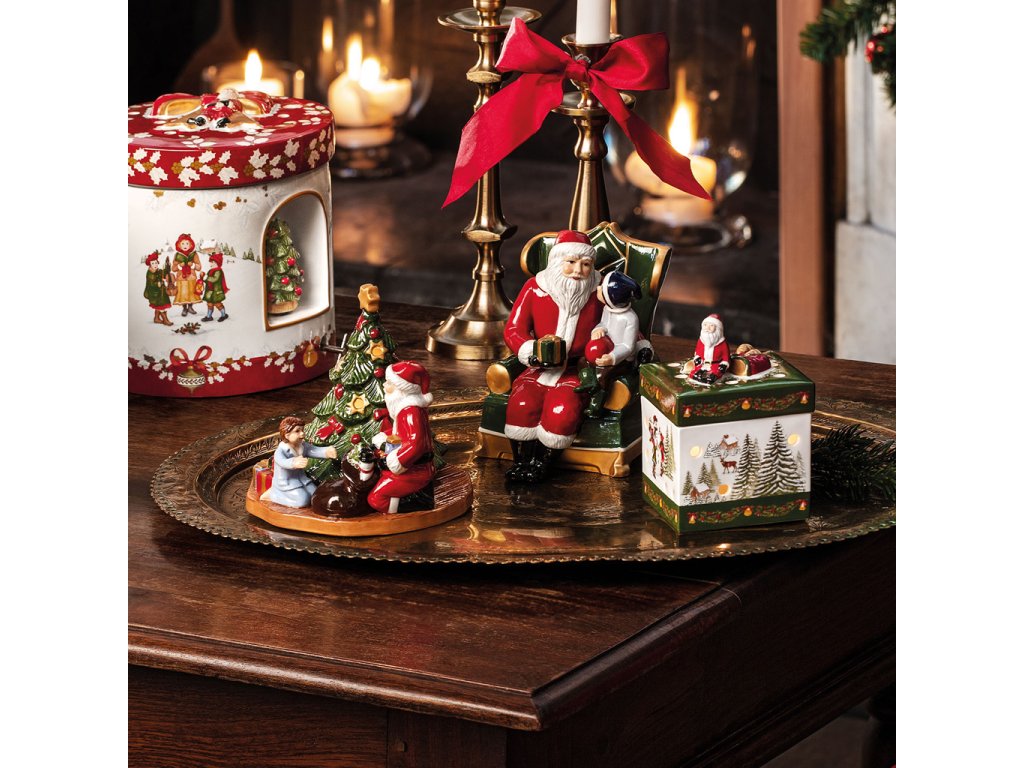 Teremtsen varázslatos hangulatot a Villeroy & Boch Karácsonyi játékok kollekciójának porcelán gyertyatartójával. A kézzel díszített mécsestartó a Mikulást, a karácsonyfát és az ajándékokat osztogató kisfiút ábrázolja - minden részlet aprólékosan kidolgozott, és a hagyományos karácsony örömét és nosztalgiáját hozza el otthonába.