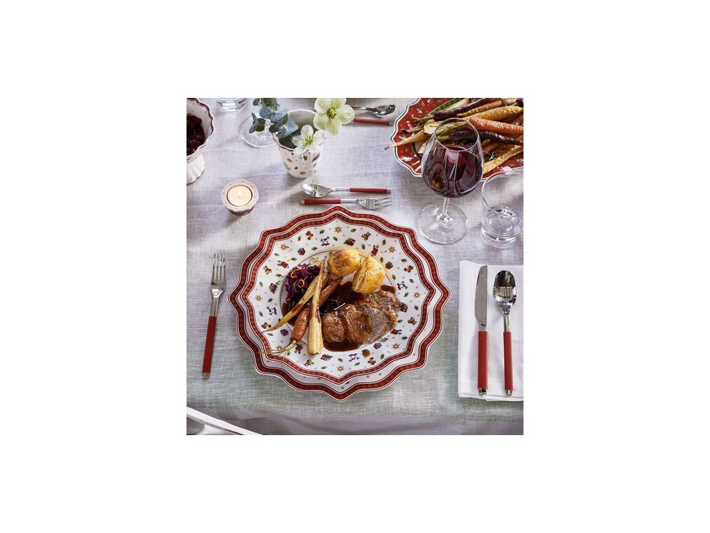 A német Villeroy & Boch cég Toy’s Delight kollekciója a karácsony kihagyhatatlan eleme. Megalkotóinak hála, a karácsony hangulata tükröződik a termékekből. Mi idézhetné fel jobban az ünnep légkörét, mint az apró fényekkel díszített karácsonyfa a körülötte szállingózó hópelyhekkel? Ezt és más díszítő elemeket is felfedezhet ezen a 70%-ban pamutból készült, két színváltozatban (piros/fehér és piros/zöld) megvásárolható terítőn, illetve a kenyérzsákon, mely a közös étkezéseknek ünnepi hangulatot kölcsönöz. A termékeknek köszönhetően a családi vacsorát egy varázslatosan díszített ünnepi asztalnál élvezheti.