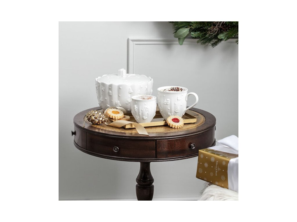 A híres Villeroy & Boch márka Toy's Delight Royal Classic kollekciója a Toy's Delight Christmas porcelán modern fehér változatát kínálja tisztelőinek. A tiszta fehér színnek köszönhetően az étkezési szolgáltatás a német Érchegységből származó játékok domborműves motívumainak szépségét emeli ki, amelyek első pillantásra felkeltik a figyelmet. A porcelán rendkívül szép és kellemes tapintású, mivel egy másik dimenziót is visz a dizájnba, amelyek kiálló díszek.