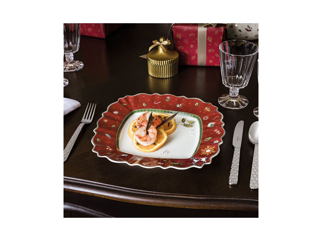 A német Villeroy & Boch cég Toy’s Delight kollekciója a karácsony kihagyhatatlan eleme. Megalkotóinak hála, a karácsony hangulata tükröződik a termékeken is. Mi idézhetné fel jobban az ünnep légkörét, mint az apró fényekkel díszített karácsonyfa a körülötte szállingózó hópelyhekkel? Ezt és más díszítő elemeket is felfedezhet ezen a négyszögletű lapostányéron, mely a közös étkezéseknek ünnepi hangulatot kölcsönöz. A termékeknek köszönhetően a családi vacsorát egy varázslatosan díszített ünnepi asztalnál élvezheti.