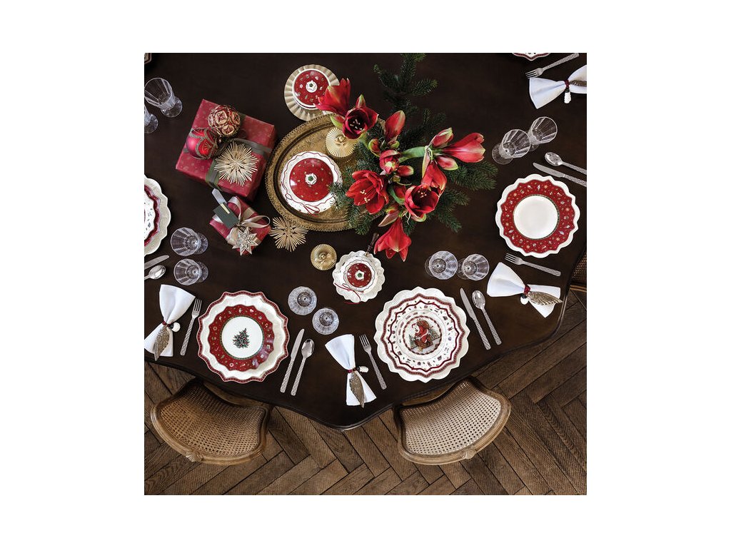 A német Villeroy & Boch cég Toy’s Delight kollekciója a karácsony kihagyhatatlan eleme. Megalkotóinak hála, a karácsony hangulata tükröződik a termékekből. Mi idézhetné fel jobban az ünnep légkörét, mint az apró fényekkel díszített karácsonyfa a körülötte szállingózó hópelyhekkel? Ezt és más díszítő elemeket is felfedezhet ezen a 70%-ban pamutból készült, két színváltozatban (piros/fehér és piros/zöld) megvásárolható terítőn, illetve a kenyérzsákon, mely a közös étkezéseknek ünnepi hangulatot kölcsönöz. A termékeknek köszönhetően a családi vacsorát egy varázslatosan díszített ünnepi asztalnál élvezheti.