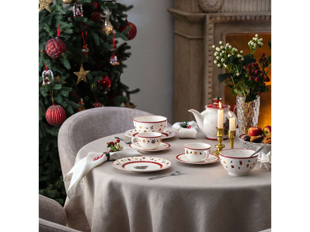 Kezdje a napot ünnepi hangulatban a Villeroy & Boch Toy's Delight Specials kollekciójának egyik tányérjával. A 21,5 cm átmérőjű tányér ideális reggelihez, desszertekhez vagy kisebb harapnivalókhoz, karácsonyi dizájnja pedig varázslatos hangulatot kölcsönöz az étkezési élménynek.