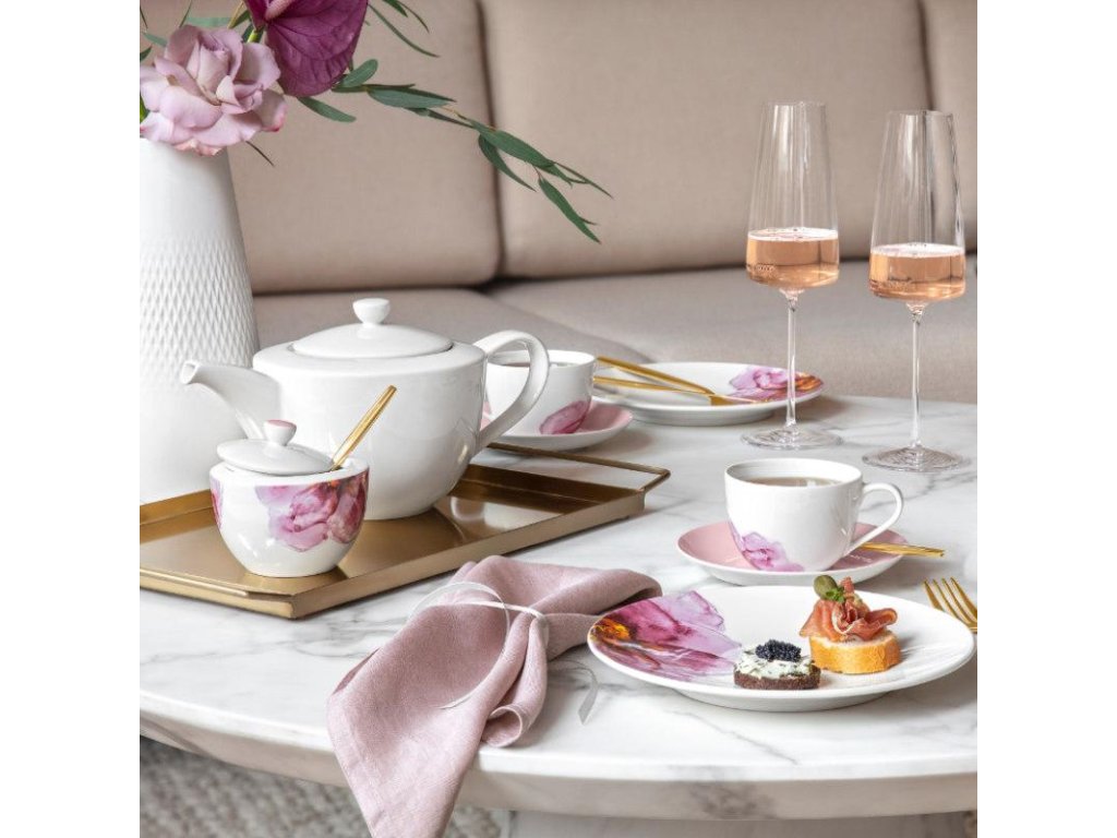 A Rose Garden kollekció egy virágzó kert finomságát hozza el az asztalára, a Villeroy & Boch porcelán tekintélyes minőségével ötvözve. Az elegáns virágmotívumok, melyeket a rózsakertek varázsa ihletett, egy csipetnyi romantikát és kényelmet visznek minden étkezési élménybe. Minden darab – a tányéroktól a tálakon át a bögréig – úgy lett kialakítva, hogy ünnepelje a megosztott pillanatok szépségét, és stílust, melegséget vigyen otthonába.
