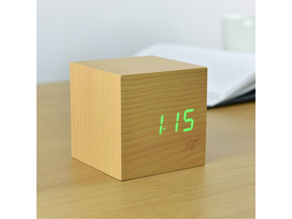 Ébresztőóra "Cube Click", bükk / zöld - Gingko