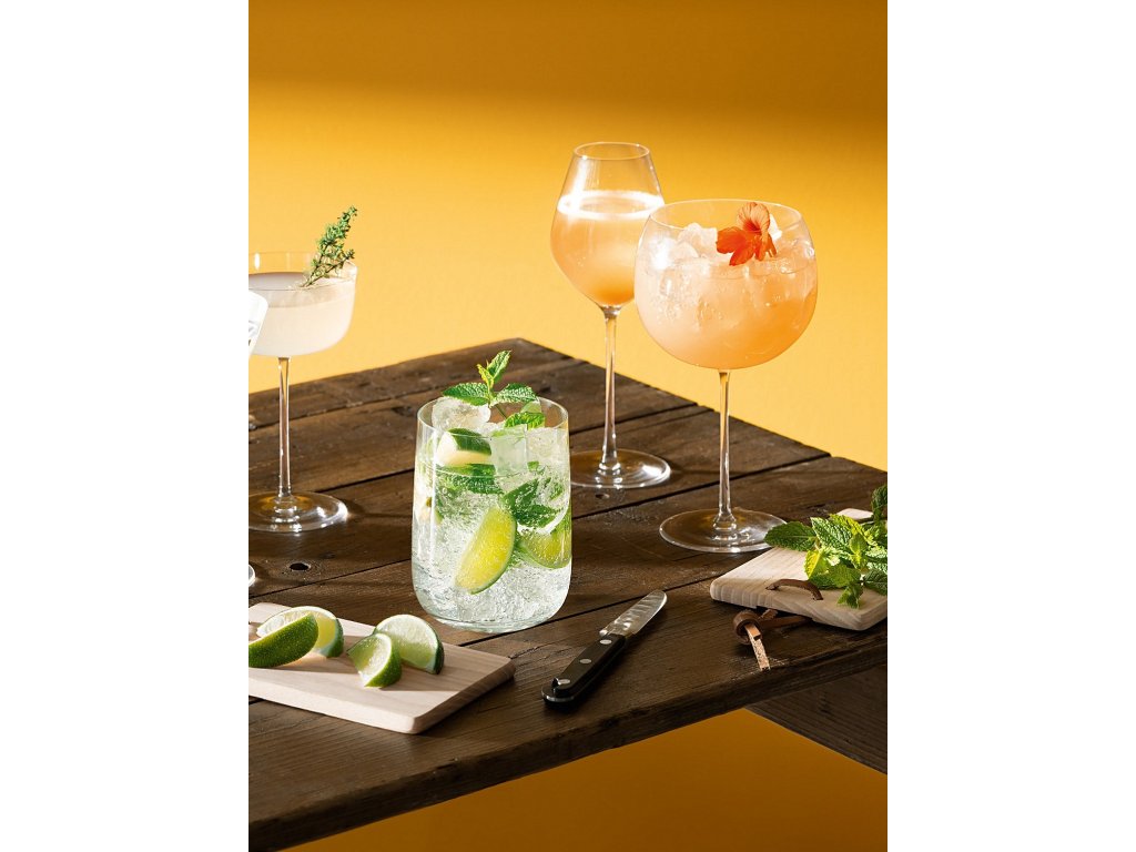 A poharak gyönyörű tulipán alakúak, amelyek szépen illeszkednek a vékony szárhoz. A kortárs társasági élet követelményei és a laza hangulat, amelyet teremtenek, ihlették őket.