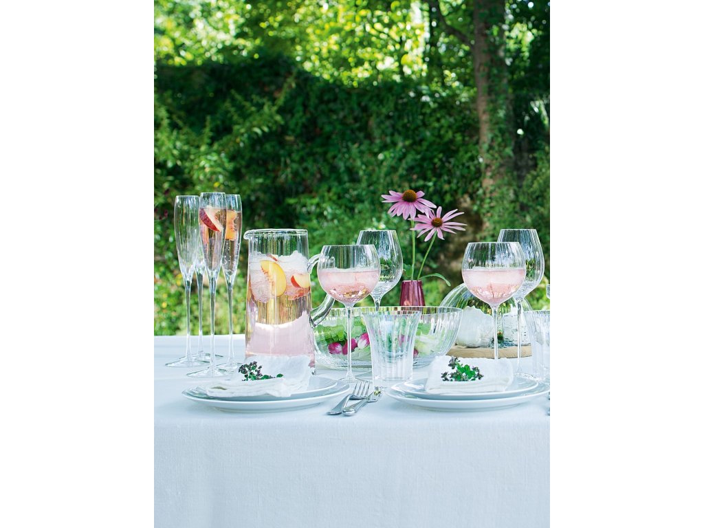 A szemüveg kivételes kialakítása túlvilági módon tükrözi vissza a fényt, bódító játékot játszik, és finoman csábít egy újabb kortyra. A nyugtalan buborékok kis gyöngyként csillognak majd a pohárban. A kézzel fújt szemüveg vékony, elegáns szárral rendelkezik, amelyet nem akar majd letenni.