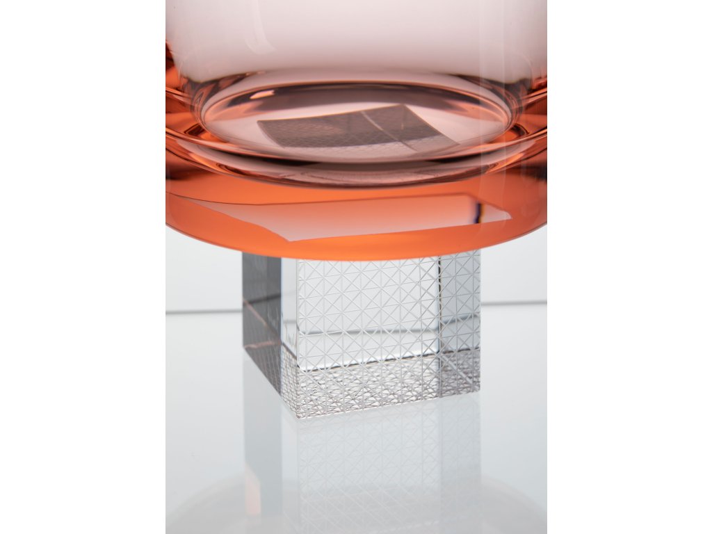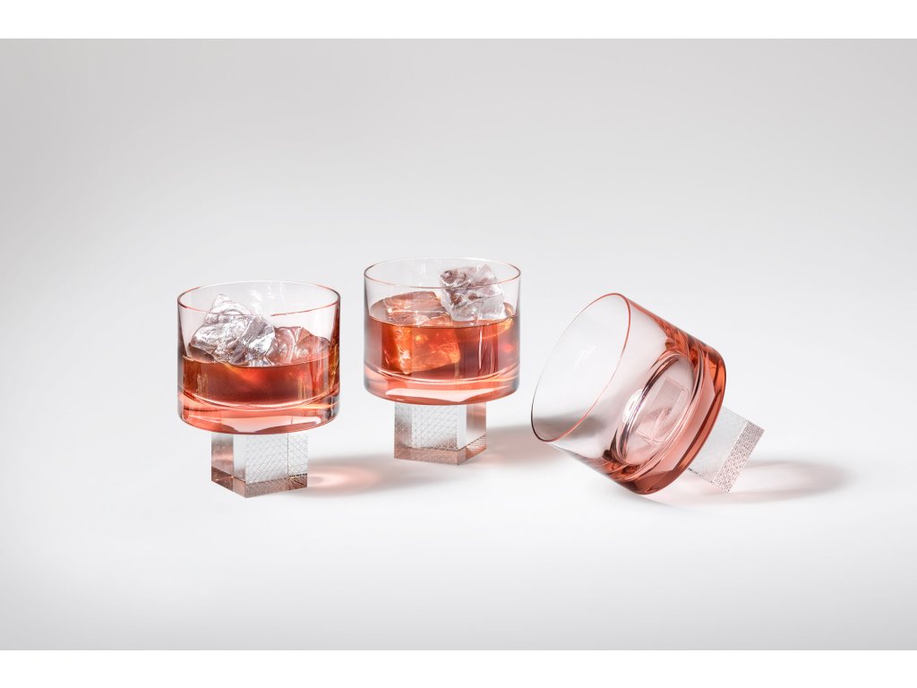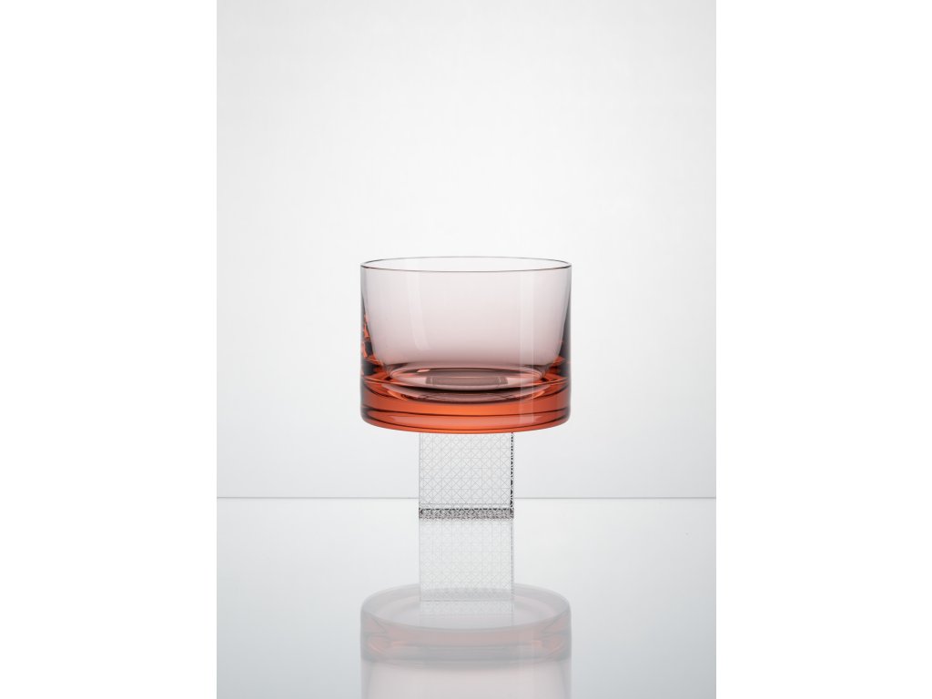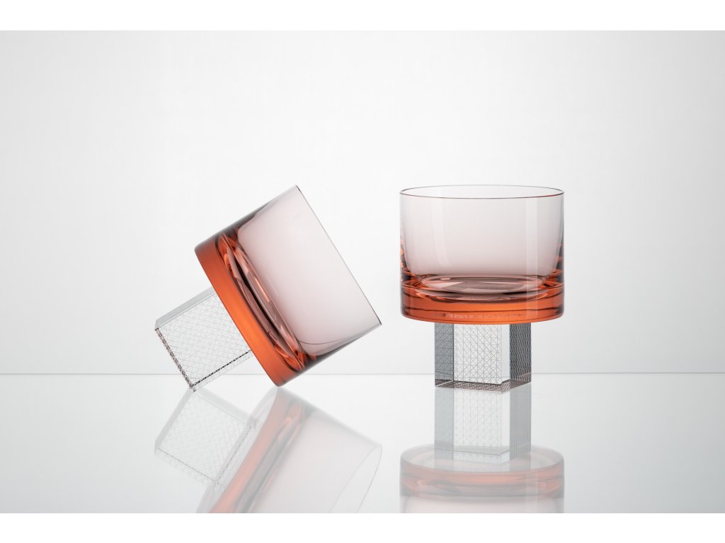 Ezt a kézzel készített whiskys poharat a 20. század modern építészete és olyan építészeti mesterek ihlették, mint például Adolf Loos. A tömör üvegláb kristályoptikával és téglalap alakú geometriával dolgozik, amelyet egy nagyon finom gravírozással díszített kristálykocka alkot, amely minden élen tükröződik.