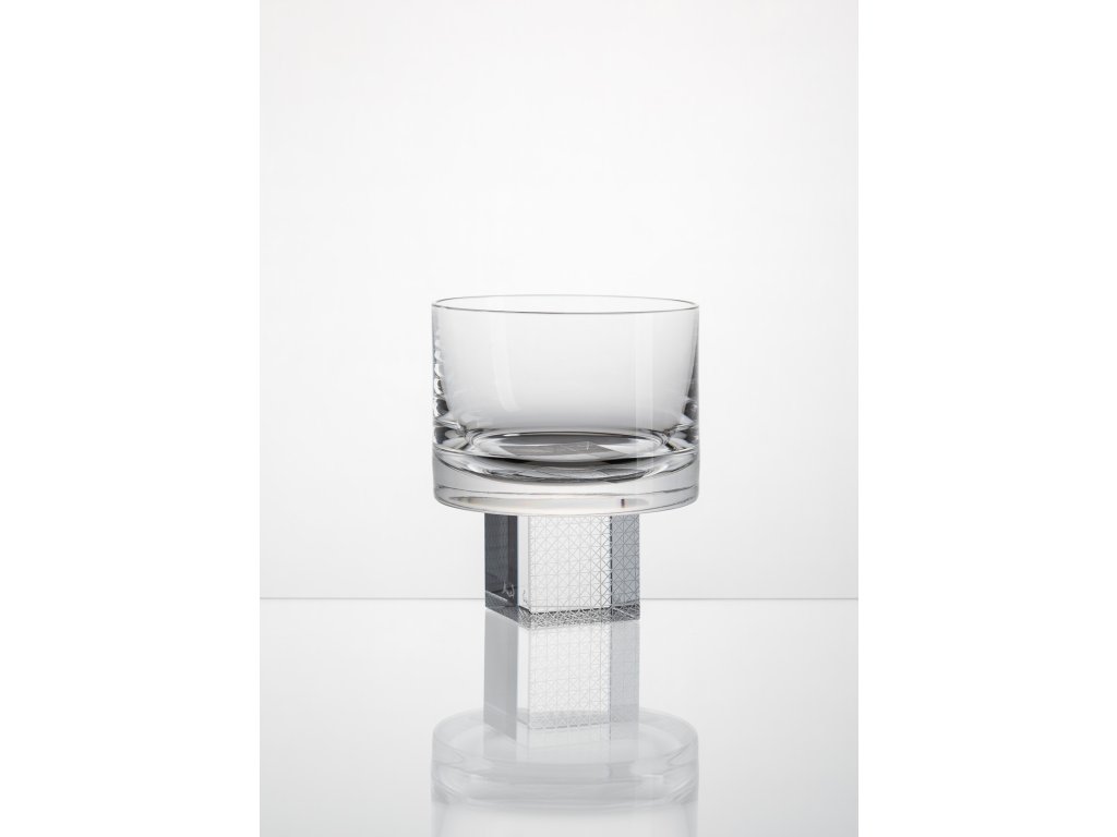 Ezt a kézzel készített whiskys poharat a 20. század modern építészete és olyan építészeti mesterek ihlették, mint például Adolf Loos. A tömör üvegláb kristályoptikával és téglalap alakú geometriával dolgozik, amelyet egy nagyon finom gravírozással díszített kristálykocka alkot, amely minden élen tükröződik.