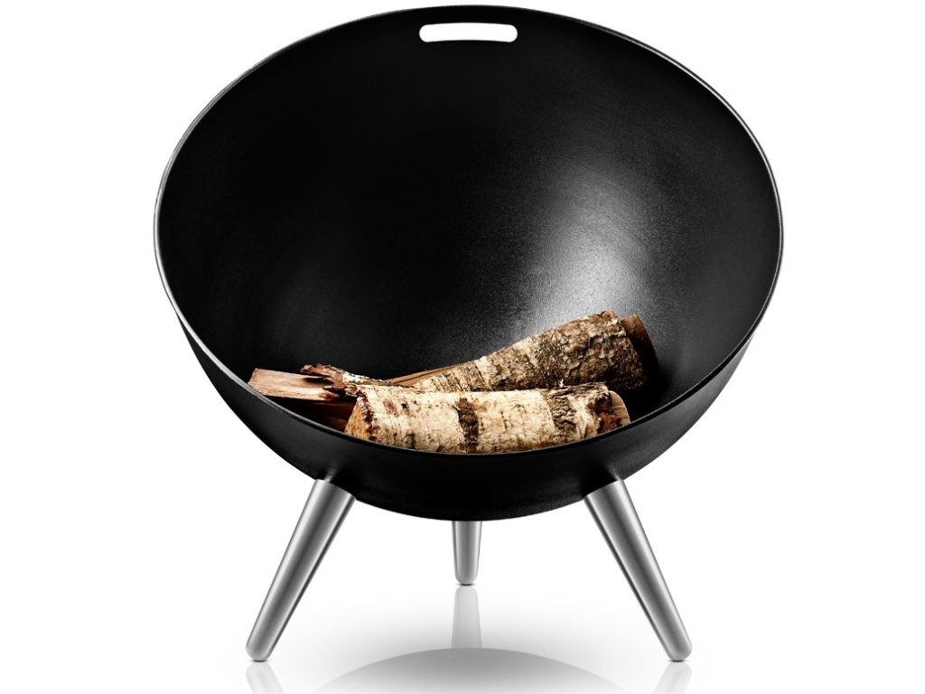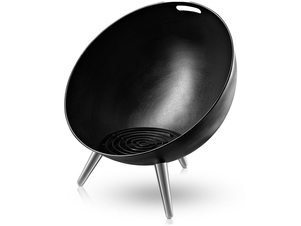 A hideg nyári esték megmelegítője. Praktikus tűzrakó tál tartós zománcacélból. Ha nem használja, egyszerűen elforgathatja. Alumínium tartó lábak. Méretek: v.66cm, w.60cm, d.64cm. Szín: fekete.