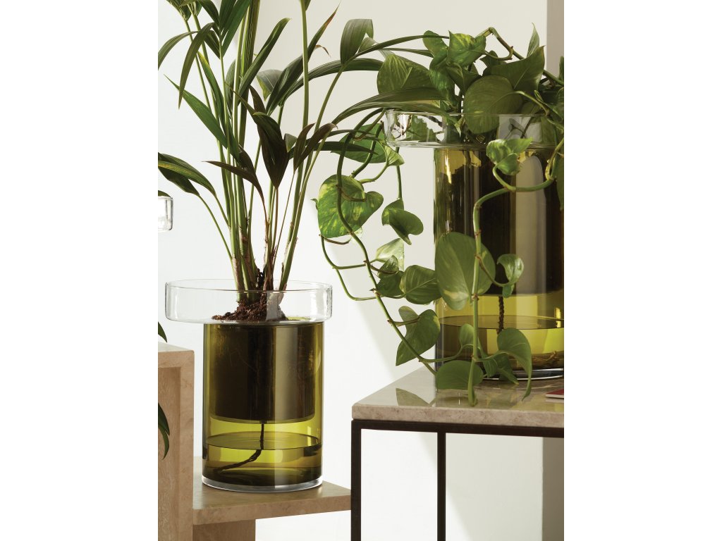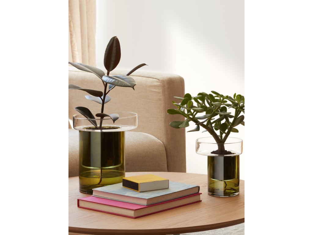 A teraszos tájak és a városi erkélyek eltolt formái ihlette kétrészes önöntöző üveges ültetőgép. A modern forma beltéri ültetésre készült, alsó része víztartállyal, felső része talajra és növényekre. A két részt egy pamut húzókötél köti össze, hogy a gyökereket egy alá- és öntözőrendszerrel láthassa el vízzel, amely a talajt érintkezésben tartja a vízzel. Ahogy a növényi gyökerek felszívják a vizet, a talaj jobban öntözött lesz, így állandó a talaj nedvességtartalma.