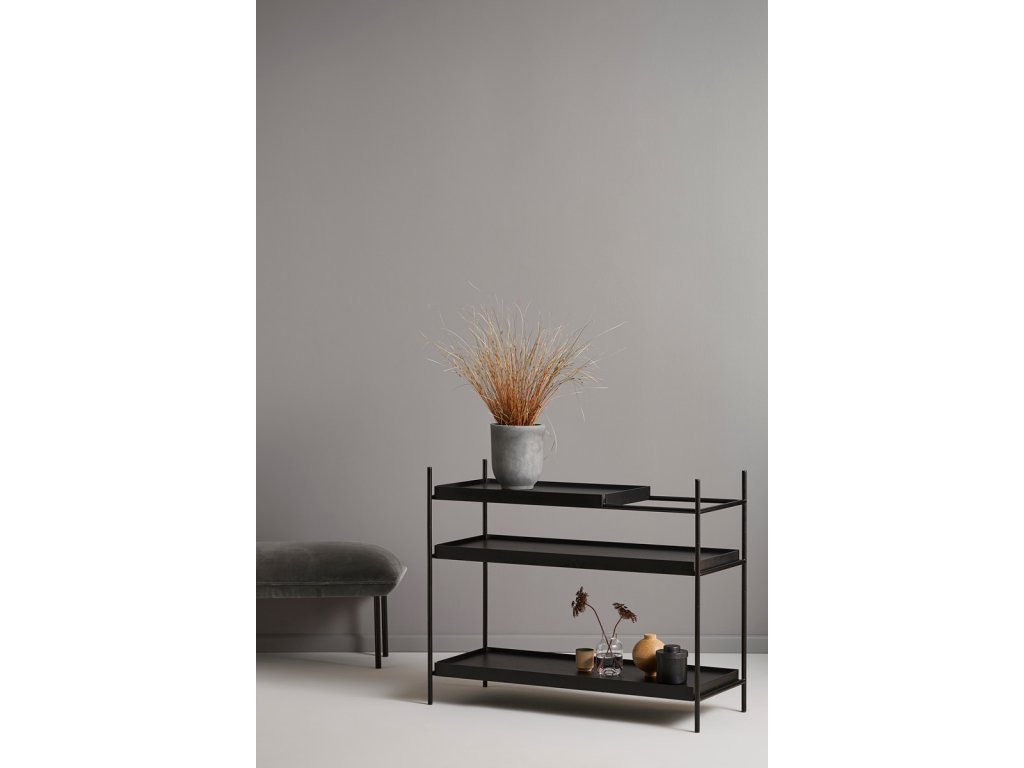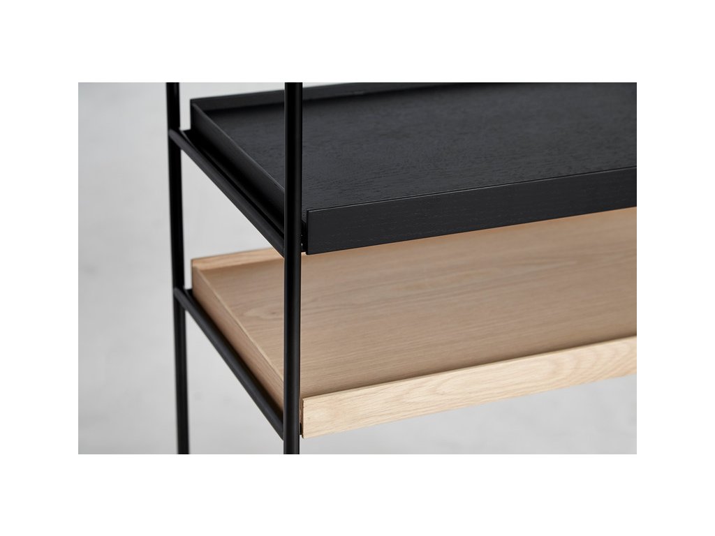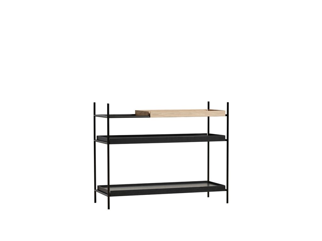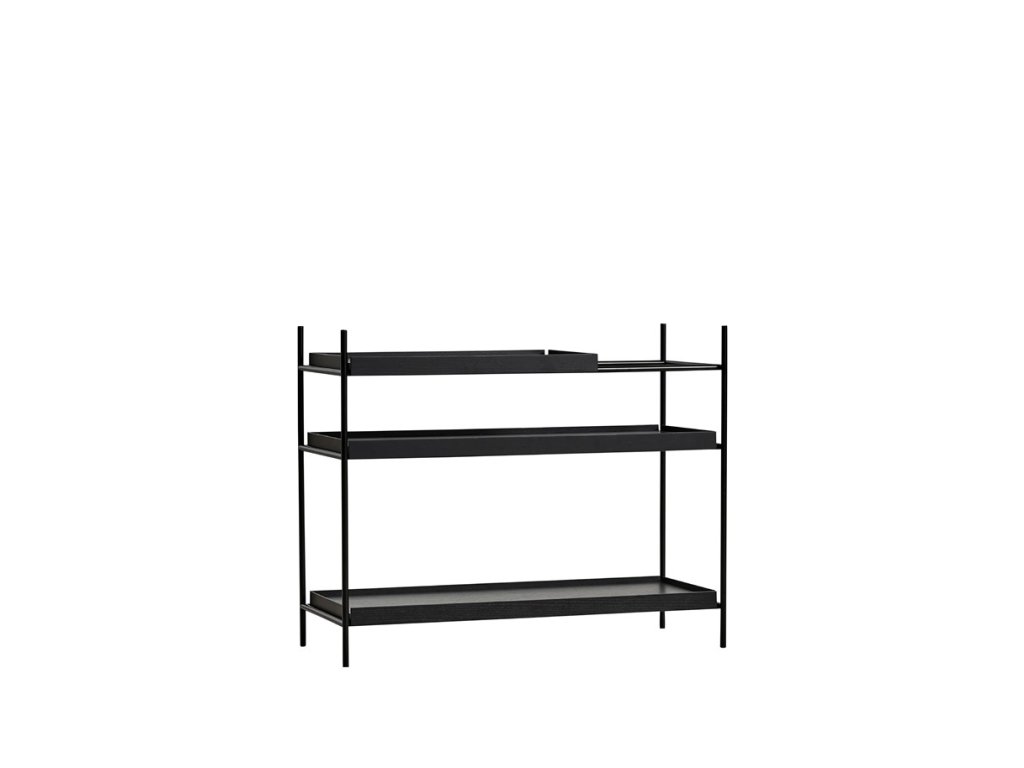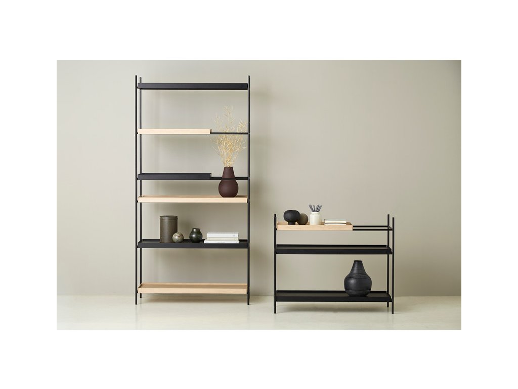 A változatos Tray polcrendszert az egyenes vonalak, szimmetria és egyszerű külső jellemzi. Egy vékony fémkonstrukció és fa polcok alkotják, amelyeket tetszés szerint mozgathat. Ne szalassza el a lehetőséget, hogy saját ízlése szerint rakja össze a polcrendszert és változtasson azon, amikor csak szüksége lesz rá. Már nem kell többé azzal a problémával szembenéznie, hogy a magasabb tárgyak nem férnek be a polcra. Csak tolja el a polcot és máris elegendő hely keletkezik egy csokor virágnak, lámpának vagy a könyveknek. A polcrendszer egyesíti magában a japán pontos eleganciát és a német tartós és minőségi konstrukciót. Egy berlini dizájner, Hanne Willmann alkotása, akinek a munkájára a a részletekhez való mély érzék és egyedi esztétikai báj jellemző. A polc kétféle magasságban , a hozzá tartozó polcok pedig kétféle színben kapható. Az alacsonyabb változat 3 polcot tartalmaz, két hoszabbat és egy rövidebbet, míg a magasabb változat 6 polcot tartalmaz - 4 hosszút és 2 rövidet. Ha nem tud választani a természetes világos vagy fekete fa között, a polcokat többféleképpen kombinálhatja. Biztosan sikerül majd választania a sokféle változat közül.
