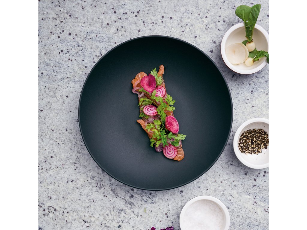 Úgy tervezték, hogy tökéletesen kiegészítse az összes modern ételt, kiemelve azokat. A fekete szín rejtélyt kölcsönöz a felszolgált ételek általános hangvételének.