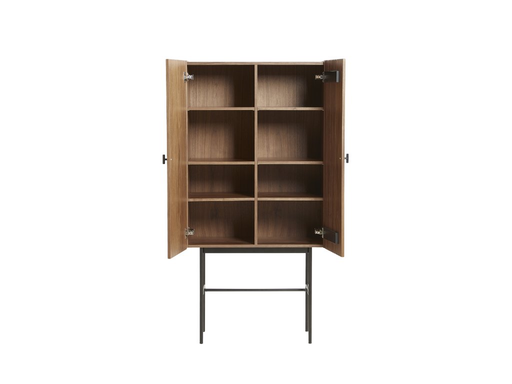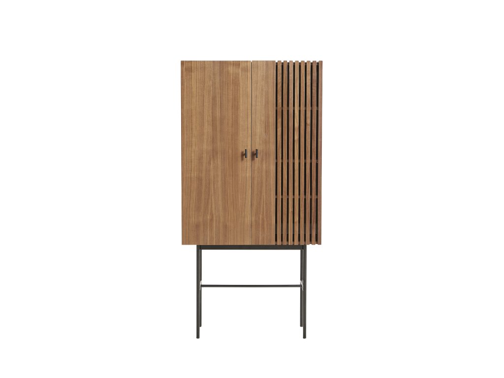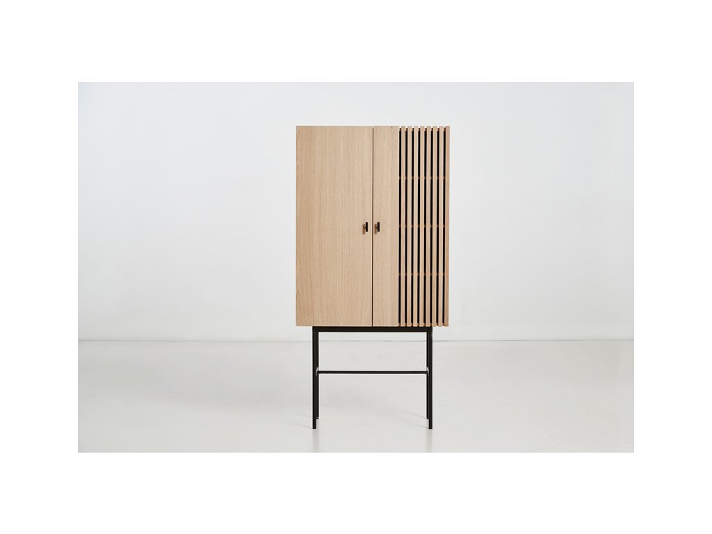 Az Array komódkollekció már az első pillantásra megragadja Önt a masszív felső fa részek és a vékony fém szerkezet nem mindennapi kontrasztjával. A tervek mögött a dán Says Who dizájnstúdió áll, amelyet Kasper Meldgaard és Nikolaj Duve alapítottak. A komódokat a modern építészet fából készült, palatetőket imitáló megoldásai ihlették. Geometrikus formáinak és vízszintes lamelláinak köszönhetően az Array komódok erős vizuális lenyomatot hagynak az emberben. A fény és az árnyék mélyen megül a lamellák között és ezzel már-már az áttetszőség illúzióját kelti szemlélőjében. Ez pedig egyre növeli a kíváncsiságot, és Ön is szeretné majd kideríteni, hogy mit rejthetnek a becsukott ajtók. Arra pedig hamar rá fog jönni, hogy az ügyes elrendezésnek köszönhetően igazán sok mindent rejthet. A komód több magasságban és szélességben kapható, így bizonyosak vagyunk benne, hogy Ön is megtalálja a megfelelőt. De végső soron nem csak egyet választhat, igaz?