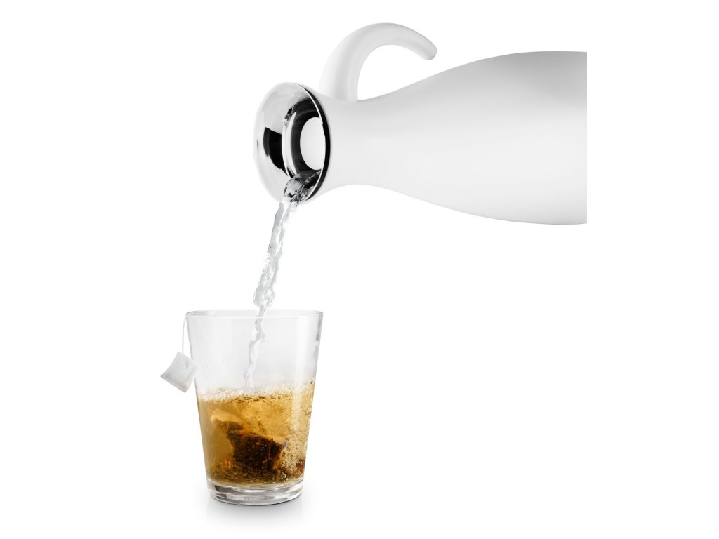 Az ikonikus Eva Solo termosz ihlette dizájner vízforraló elegáns íveivel és praktikus részleteivel tűnik ki. A vízforraló a fedél eltávolítása nélkül is megtölthető, széles formájának és alacsony súlypontjának köszönhetően pedig mindig stabilan áll. A rozsdamentes acél kiöntő precíz és 100%-ban cseppmentes öntést biztosít, míg a vezeték nélküli kialakítás és a 360°-ban forgó talp megkönnyíti a kezelést.
