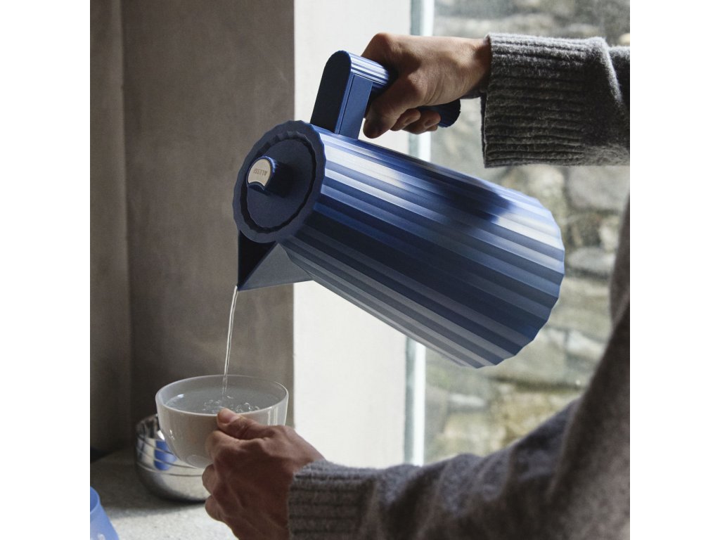 Michel De Lucchi ikonikus Plissé kollekciója a mindennapi konyhai eszközöket művészi élménnyé varázsolja. Ez a kék vízforraló a redőzött dizájnt ötvözi a praktikus funkcionalitással - stílusosan és hatékonyan készíthet teát vagy kávét.
