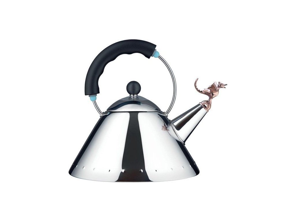Michael Graves amerikai tervezőt, aki ezt a vízforralót is tervezte, munkái során számos művészeti irányzat ihlette, köztük az art deco és az európai modern művészet. Így ötvözi a posztmodern és a popkultúra legjavát a 80-as és 90-es évek fordulójáról. Ezután az olasz Alessi márka számára alkotta meg ezt a vízforralót, amely a világ egyik legkelendőbb terméke a cég kínálatából. Egyszerre elegáns és játékos. A tükörfényes rozsdamentes acél, amelyből a teáskanna készült, hatékonyan veri vissza a fényt és elegánsan néz ki. A játékos elemek a fekete markolatrész és mindenekelőtt a sárkány alakú síp, amely akkor játszik, amikor a gőz áthalad, amikor a víz felforr. Minden alkalommal, amikor főz egy csésze kávét vagy teát, pontosan mosolyogni fog a kávéfőzőnek köszönhetően. A nyél fogantyúja olyan anyagból készült, amely még víz forralása közben sem lesz forró, így gond nélkül megfoghatja a vízforralót. Ez egy elegáns, funkcionális és egyben játékos és szórakoztató vízforraló. Az edény átmérője 22 cm, magassága 22,5 cm, alja indukciós főzőlapon való használatra alkalmas. Tedd boldoggá magad ezzel a vidám és dizájnos kiegészítővel.